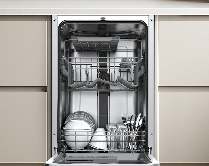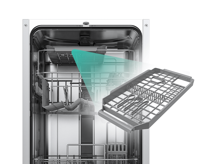 Enjoy maximum flexibility with a smart 2.5 basket design. The extra half basket is perfect for smaller items like cutlery, cups, or utensils, making loading easier and more efficient. Every inch of space is optimized for better organization and perfect cleaning results.