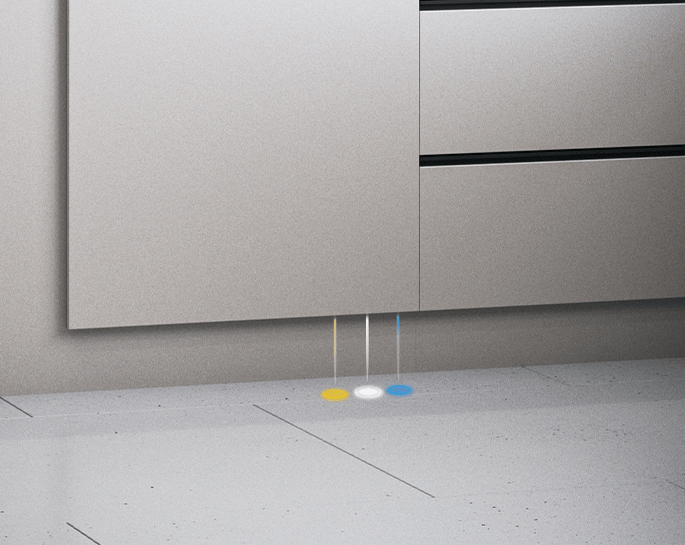 You’ll always know when the machine has finished the washing program, thanks to the light indicator - LED light projected on the floor. This feature is quite useful for built-in dishwashers, as the control panel in these devices is hidden, so when the program is finished, the LED indicator lights up and flashes 5 minutes after the program ends, then turns off.