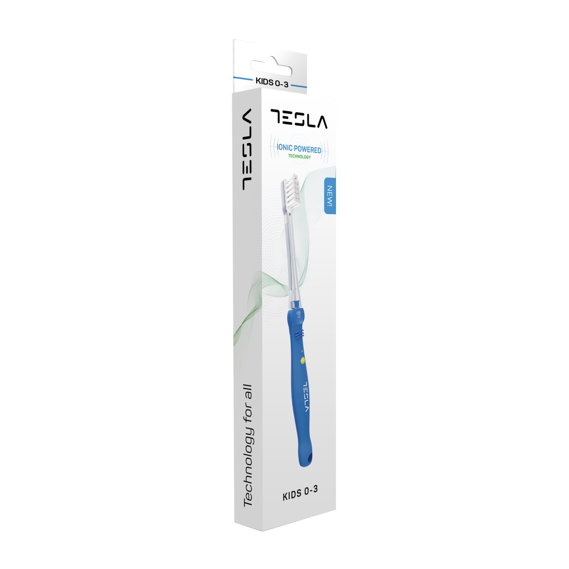 The Tesla Kids toothbrush is specially designed for children, with adapted sizes for ages 0–3 and 4+. The brushes feature ultra-soft bristles and use ions to gently clean and protect the teeth.