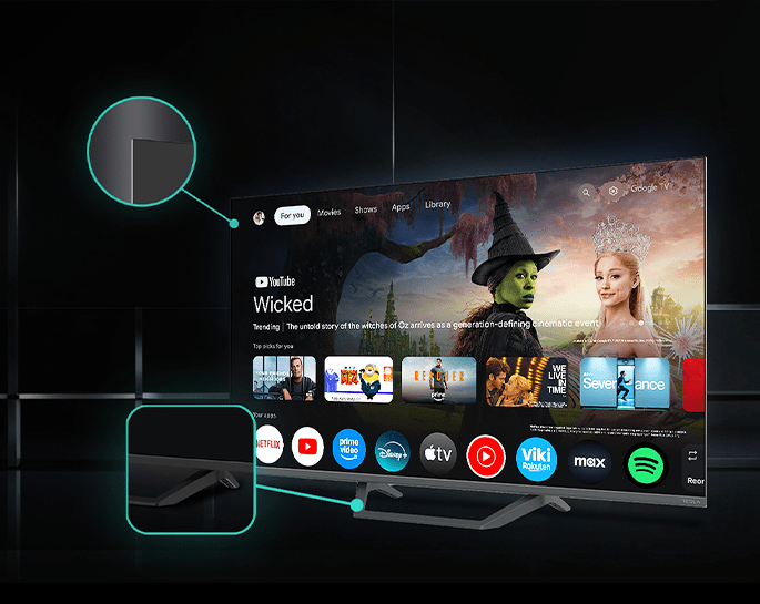 Google TV transforms entertainment by integrating your favorite streaming services, live channels, and apps into one intuitive platform. With personalized recommendations, access to over 10,000 apps, including Netflix, Disney+, Prime Video, YouTube, Apple TV, and HBO Max, and support for Google Assistant, your favorite content is always within reach, whether at the press of a button or with a simple voice command.